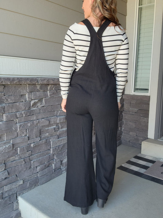 Relaxed Wide Leg Overall Jumpsuit (Black)